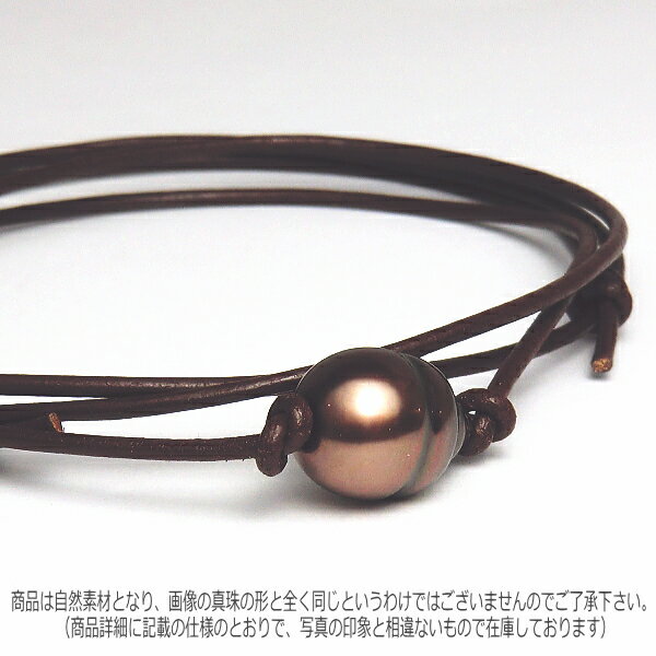 黒蝶真珠 革紐ブレスレット ショコラカラー 10mm(革紐カラー:ダークブラウン)
